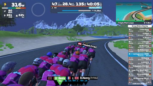 Zwift - Group Ride: Rapha Festive 500 with Genie @ 3.6 W/KG on Triple Flat Loops in Watopia