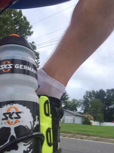 Dorky socks offset by kick ass water bottle Ride
