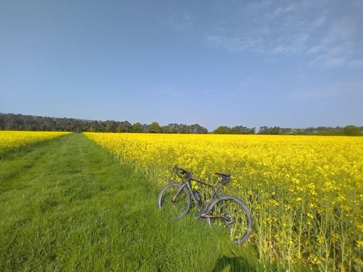 Road, gravel, grass.