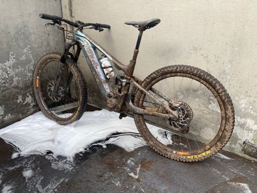 Bicicleta de montaña eléctrica matutina
