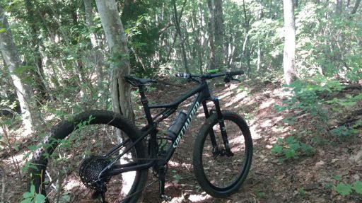 Trail action. Definitely harder work pushing a heavier bike but worth it for the down hill