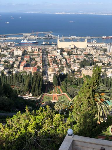 Climbing from the sea to the top of the Baha’i temple gardens.