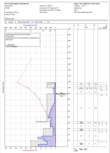 Schneeprofil am Pazzolastock