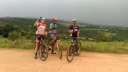 Pedalada de mountain bike ao entardecer