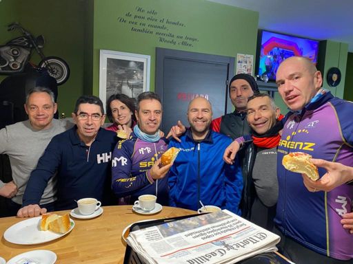 Salida con avituallamiento de roscón🍩y cava🍾 donde Rafa. Con remojón a la ida y la vuelta💜💛💜🏹