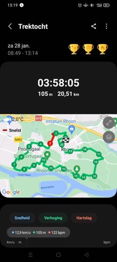 Heen en weer. Helaas kreeg Michel last van zijn knie