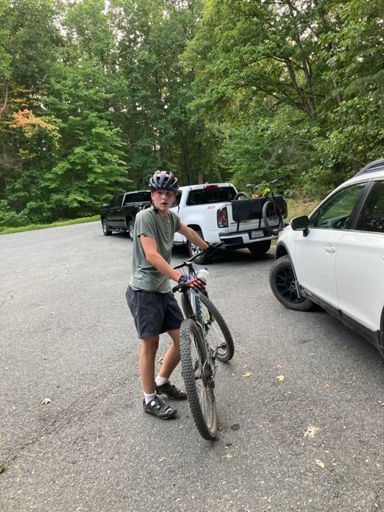 Gabriel goes clipless on his 15th and rips my legs off on the last climb up Trench Hill