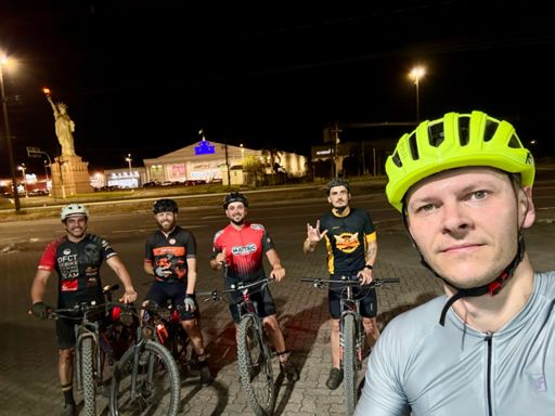 Pedalada de mountain bike ao entardecer
