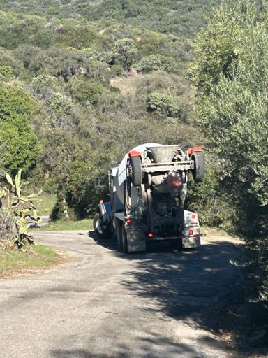 Cement truck stuck on the last sharp turn of painted cave