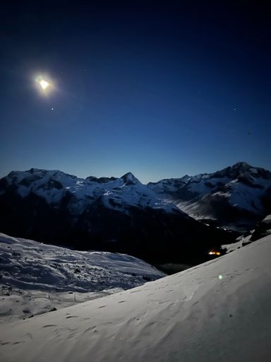Skiabfahrt in der Nacht