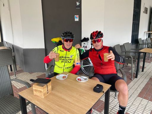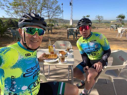 Hoy día de recuperación 🐢 a Pedro Abad ☕️🥖 con el amigo Makarni 🚴🏻🚴🏻
