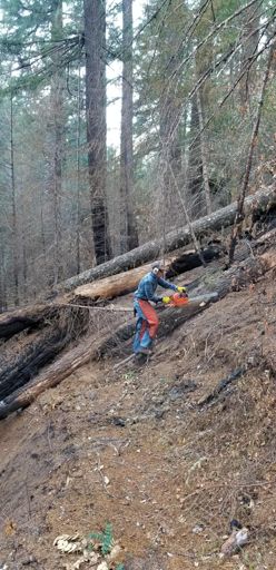 Raking the forest.