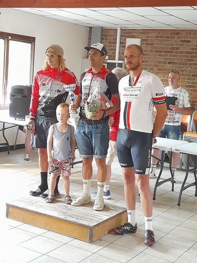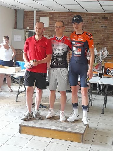 2ème Grand Prix Cycliste UFOLEP de Zermezeele Moto ouvreuse. 1ère catégorie victoire de Timotei Laleu.