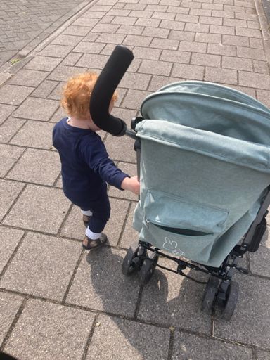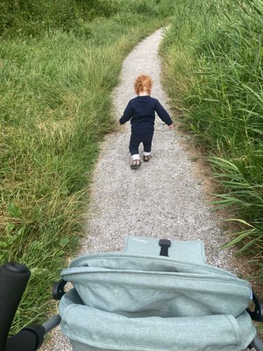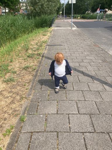 Met de kleine meid zelf wandelend naar de speeltuin.