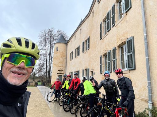 Belle sortie cet après-midi avec un groupe en pleine forme ! Merci à ceux qui ont pris le vent… et qui nous ont permis de respirer derrière. Photo obligatoire devant le célèbre château du XVIIIᵉ siècle de Hombourg-Budange, histoire de prouver qu’on ne fai