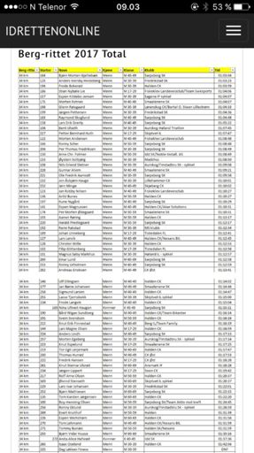 Bergrittet, kjørte bra men kjørte feil... Ble 800m ekstra, bomma på et kryss. Hang på teten i 25km, da var vi 8 stk, kjørte alene etter siste 8 km, ble nr 11 totalt