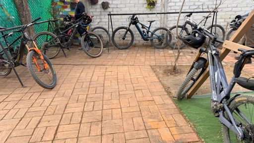 Bicicleta de montaña eléctrica a la hora del almuerzo