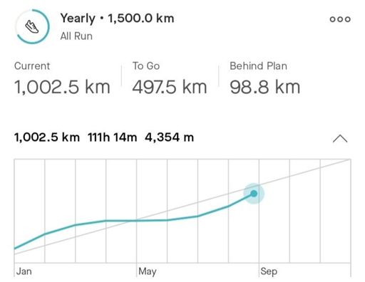 Afternoon Run - 9km (1000km milestone for the year reached)