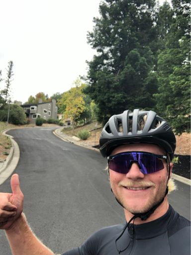 Bjergetape KOM på en 15% kort bakke! Se selfie med bakken! top 10 på col du Alta mesa! Og så havde jeg mekaniske (kæde + gear) problemer på vej op af rheem blvd - billeder af problemerne, mine hænder og af mine roommates der renser mine hænder bagefter