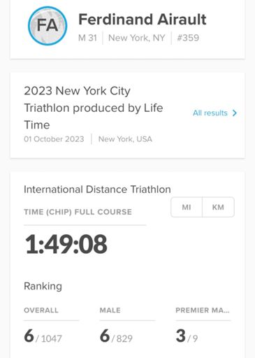 NYC Triathlon - Swim replaced by a sprint - 🥈 overall on this leg - 🥉 category and 6th overall