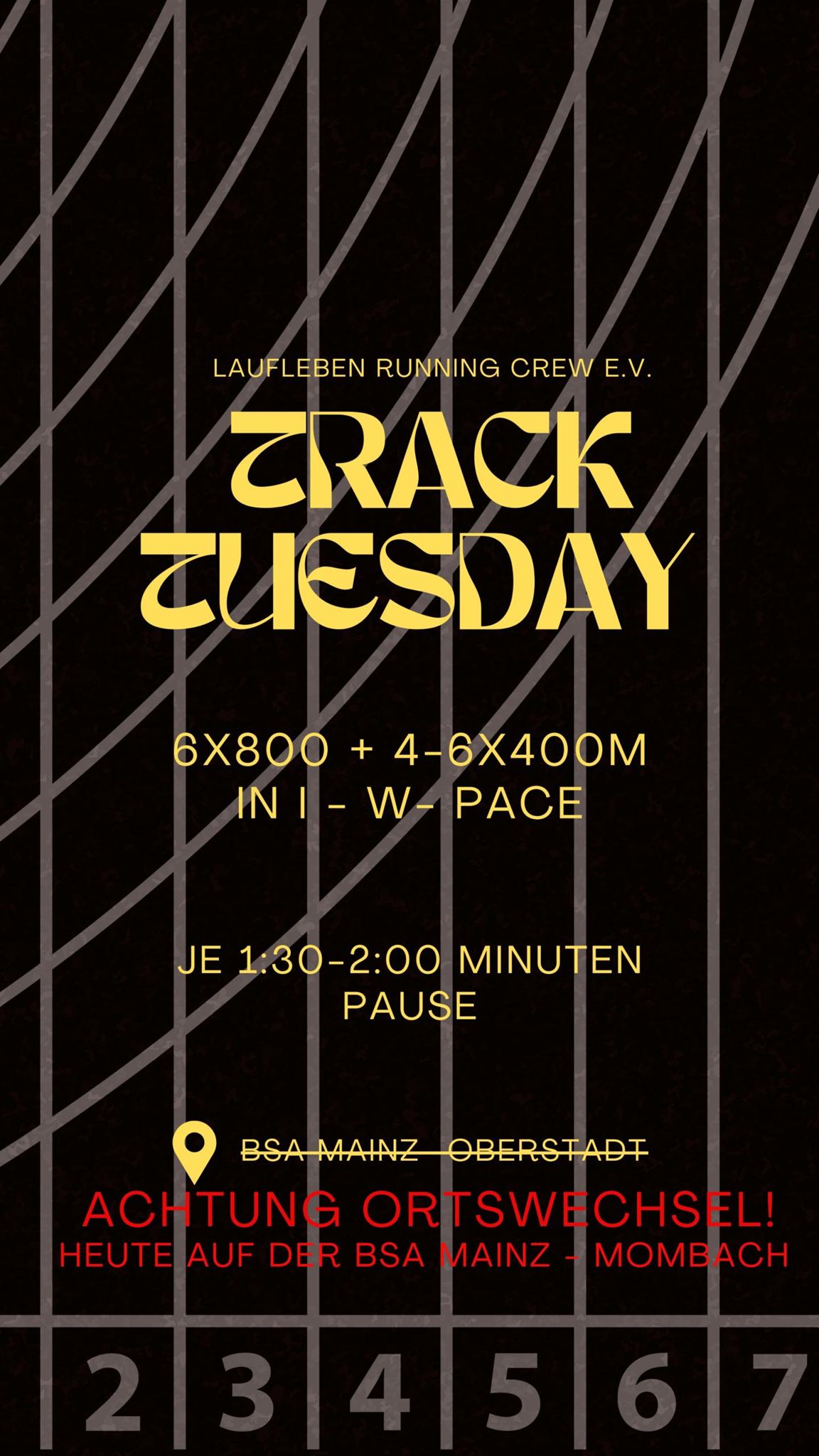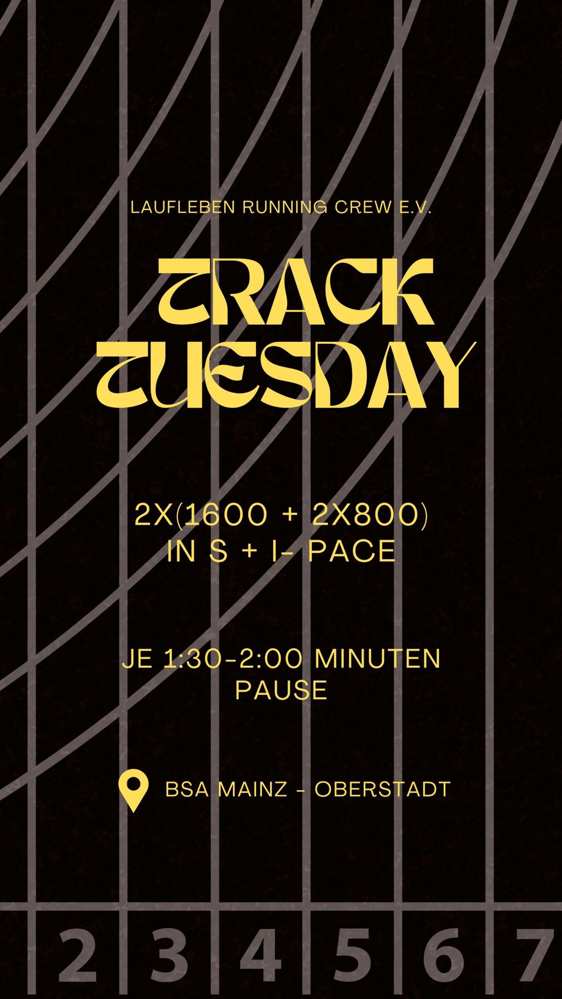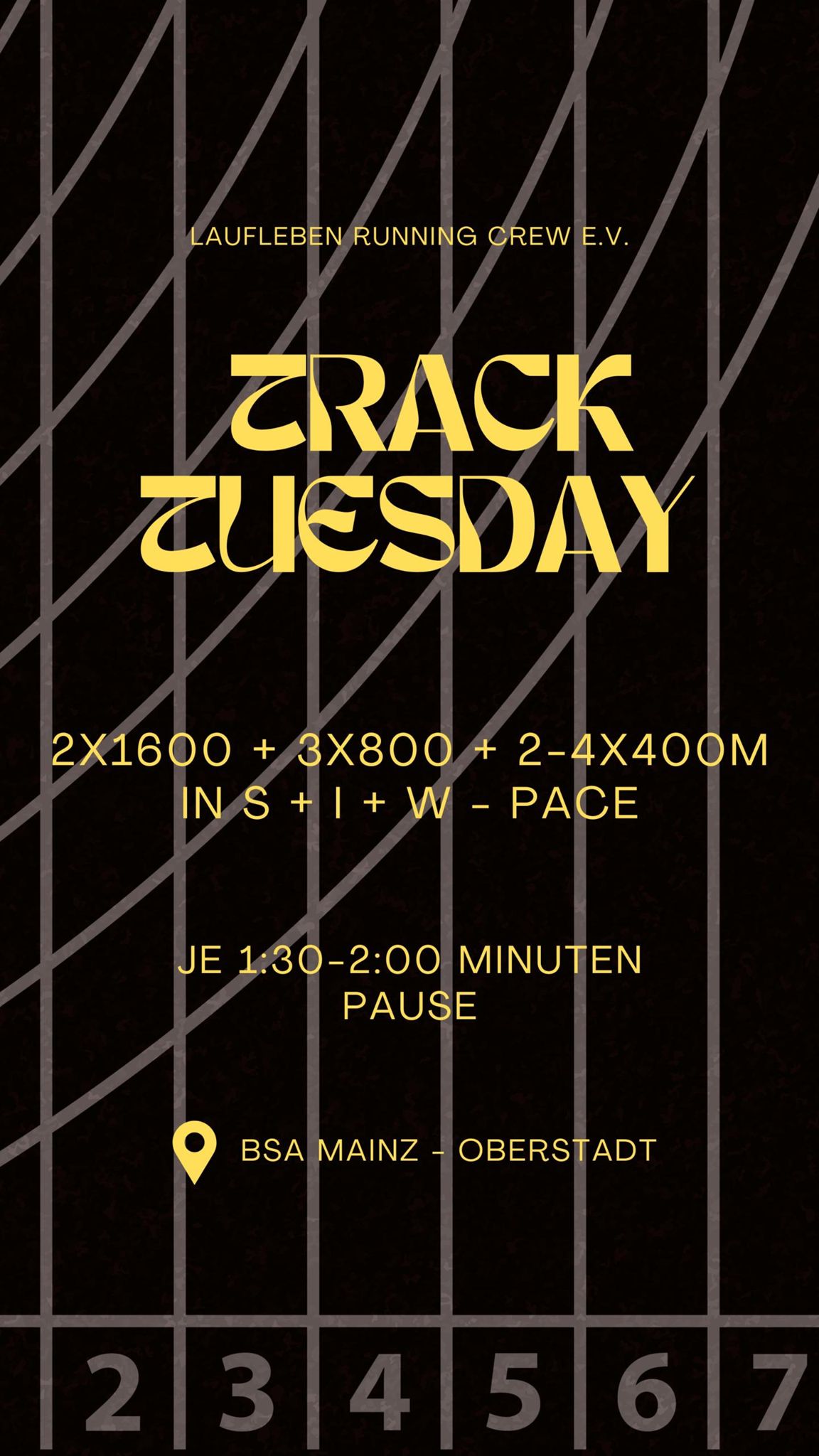 Mainz, Rhineland-Palatinate, GermanyOffenes Bahntraining Jeden Dienstag um 19:00 Uhr Schillstraße 15, 55131 Mainz ------------------------------------------------------ Wir sind eine bunt gemischte Gruppe, verbunden durch unsere Leidenschaft für den Laufsport. Weil niemand immer nur allein laufen möchte, trainieren wir nicht nur zusammen, sondern nehmen auch gemeinsam an großen und kleinen Volksläufen teil und motivieren uns gegenseitig. Am Wochenende laufen wir auch mal quer durch Rheinhessen und erkunden neue Strecken.