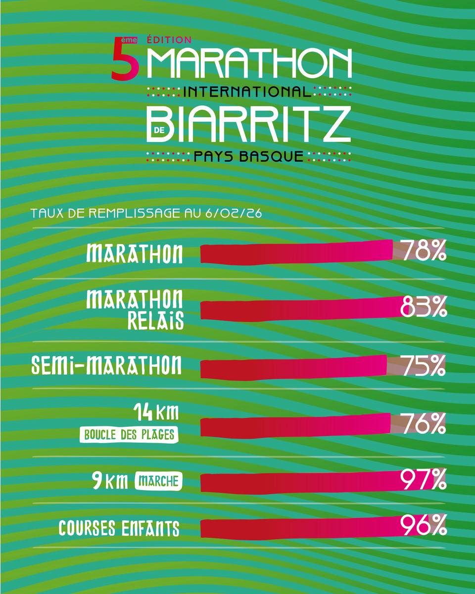Biarritz, Pyrénées-Atlantiques, FranceMarathon International de Biarritz – Pays Basque – « Prenez la bonne vague » 🌊 🗓 3 mai 2026 🚀 Inscriptions ouvertes : https://in.sports107.com/marathonbiarritz2026/?campaign=6863d196cb8f37a50eac1ef8 Outre l’ambiance légendaire du territoire basque, c’est le caractère exceptionnel du parcours proposé sur les différentes épreuves qui fait la richesse du Marathon International de Biarritz – Pays Basque. 🤩❤️🌶 ✅ Marathon ✅ Marathon Relais 3 ✅ Semi-Marathon ✅ 14km La boucle des plages ✅ 14km duo entreprises ✅ 9km Rando ✅ Enfants