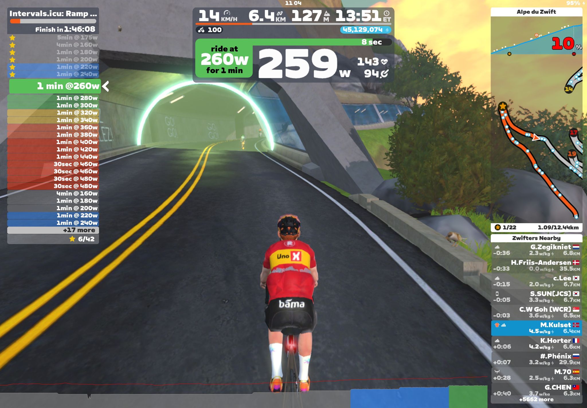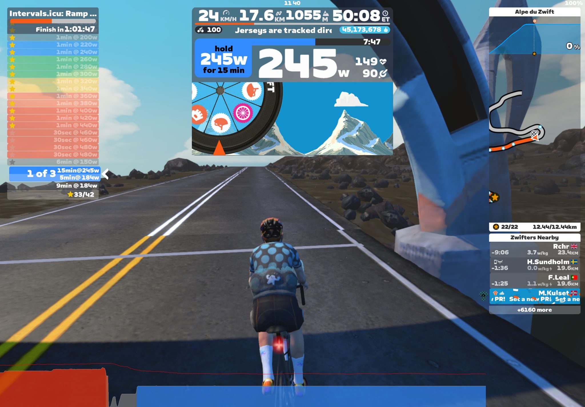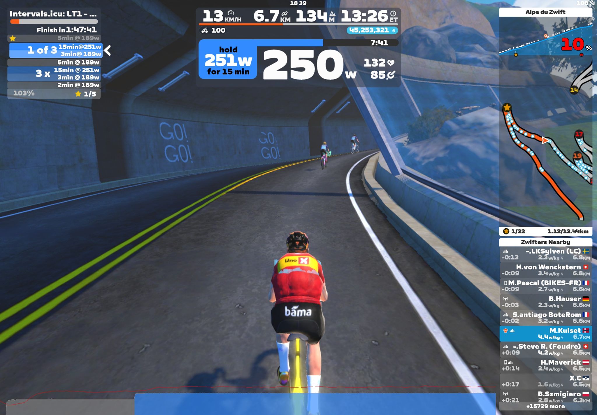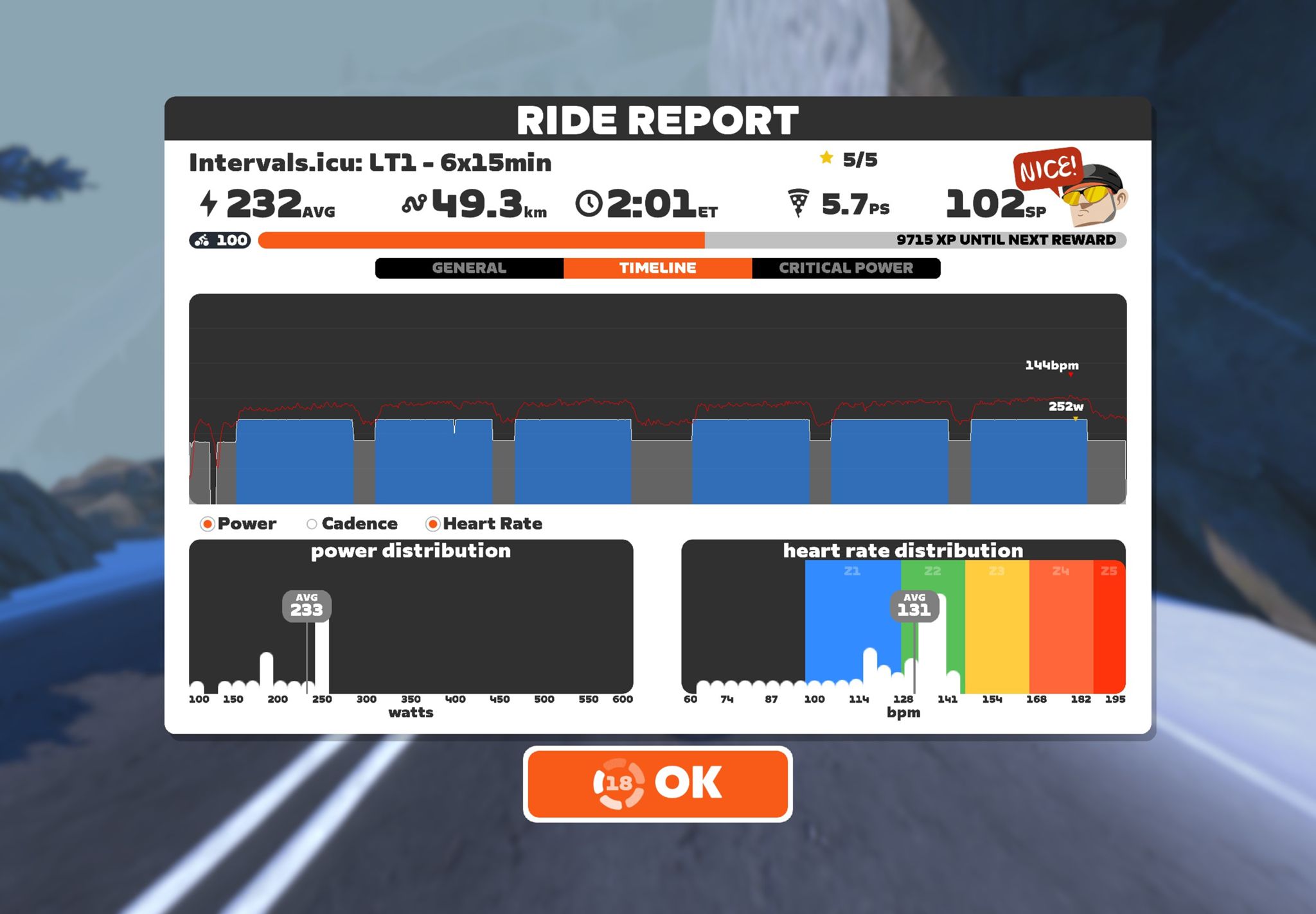 Zwift - : LT1 - 6x15min on Road to Sky in Watopia