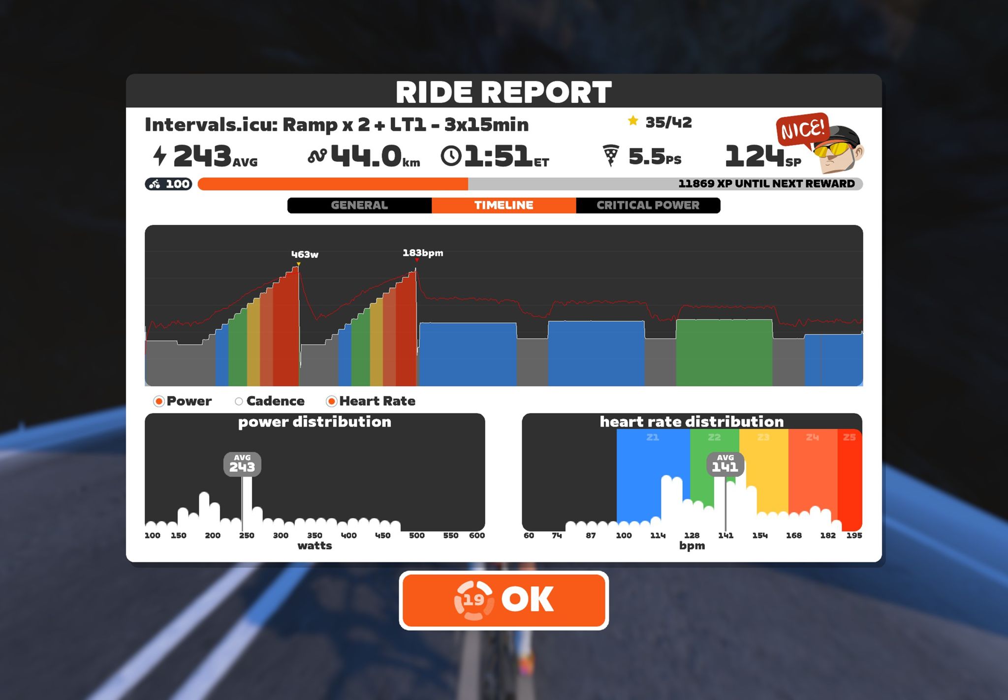Zwift - : Ramp x 2 + LT1 - 3x15min on Road to Sky in Watopia